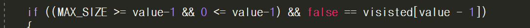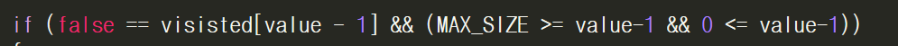 if ((MAX_SIZE >= value-1 && 0 <= value-1) && false == visisted[value - 1])