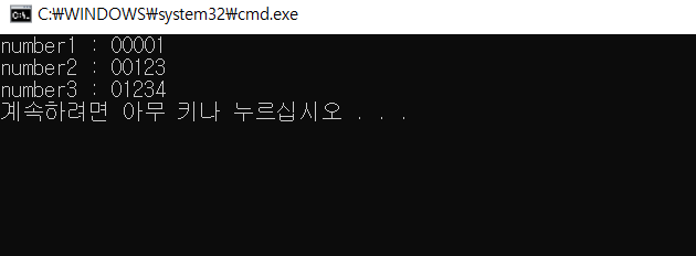 > 포맷을 지정할 경우 자릿수만큼 0 을 입력해 주면 된다.