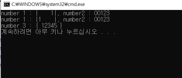 - {위치 지시 번호, 문자열 정렬 지정} e.g : {05}