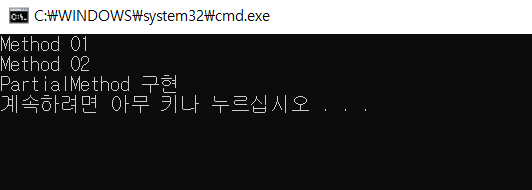 Console.WriteLine("PartialMethod 구현");