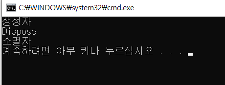 - 소멸자와 더불어 C# 에서는 IDisposable 인터페이스 상속을 통하여 리소스를 정리하는 방법이 존재한다.