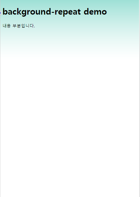 - 기본적으로 브라우저는 배경 이미지를 가로 및 세로로 반복하거나 바둑판식으로 배열하여 요소의 전체 영역을 채운다. 이를 background-repeat 속성으로 제어할 수 있다.