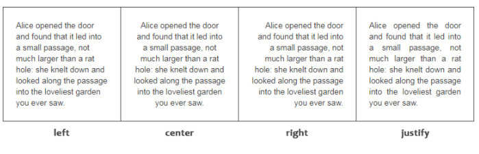 - 왼쪽, 오른쪽, 가운데 또는 양쪽 맞춤의 4가지 방법으로 정렬할 수 있다.